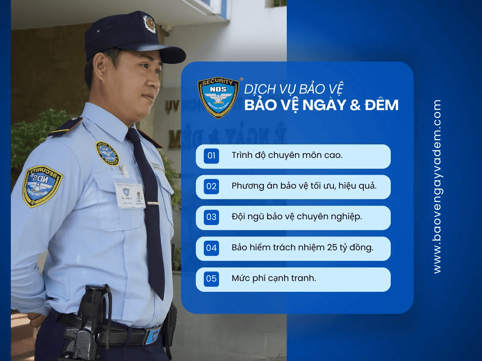 - Mọi công tác tuyển dụng, huấn luyện, bố trí nhân sự, quản lý, kiểm tra, giám sát lực lượng bảo vệ… đều do Công ty Bảo vệ Ngày & Đêm chịu trách nhiệm.